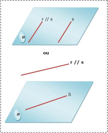 O principal requisito para que uma reta seja paralela a um plano é que de modo algum ela esteja inclusa nele e seja paralela a uma reta desse plano. Vejamos: