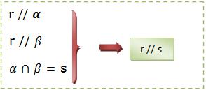 c) Se considerarmos que uma reta é paralela a dois planos secantes, então poderemos dizer que ela é também paralela a intersecção dos dois planos. Vejamos a figura: