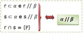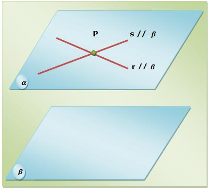 O principal requisito para que dois planos diferentes sejam paralelos é um deles possuir duas retas concorrentes entre si e paralelas ao outro. Vejamos: