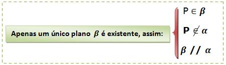 b) Se considerarmos um ponto que não pertence a um plano, notaremos que haverá e será exclusivo o plano paralelo a ele (extensão do postulado de Euclides da Geometria Plana).
