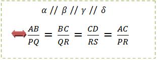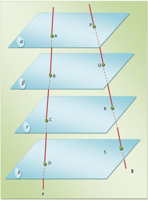 Um feixe de planos paralelos determina a cerca de duas transversais secções congruentes devidamente proporcionais.