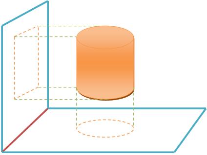 Na figura, o retângulo é a projeção ortogonal do cilindro num plano paralelo ao eixo. Já o círculo é a projeção do mesmo cilindro num plano paralelo a base. Assim: