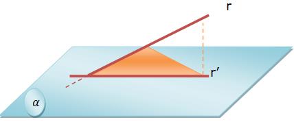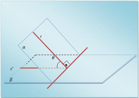 O ângulo θ que a reta r estabelece com o plano α é o ângulo que a reta r estabelece com sua projeção ortogonal r’.