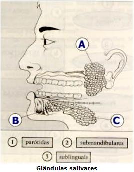 Amilase salivar ou ptialina – Enzima que atua sobre o amido e outros polissacarídeos (glicogênio, por exemplo), transformando-os em moléculas menores de maltose.