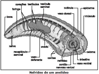 O anelídeo possui um sistema excretor denominado nefrídeos. As substancias assimiladas e transformadas entram por um canal e os transporta até a extremidade, sendo rodeado por vasos sanguíneos, na qual se constitui um orifício onde são excretadas as substancias.