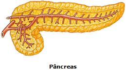 O pâncreas é uma glândula do sistema digestivo com aproximadamente 15 cm. Esta glândula apresenta duas partes, uma exócrina e outra endócrina.