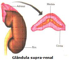 As adrenais ou supra-renais são glândulas que estão localizadas na parte superior aos rins. São formadas por duas regiões distintas: o córtex e a medula.