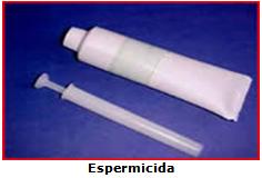 É um produto com a consistência de geléia ou espuma na qual a mulher anteriormente ao ato sexual introduz na vagina. O produto age matando os espermatozóides.