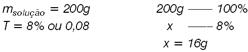 (UEL-PR) Em 200g de solução alcoólica de fenolftaleína contendo 8,0% em massa de soluto, a massa de fenolftaleína, em gramas, contida na solução é igual: