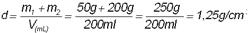50g de NaOH dissolvidos em 200ml de água forneceram 210ml de solução. Calcule a densidade da solução em g/cm3.
