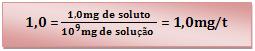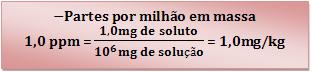 Em soluções diluídas é comum utilizar a concentração em partes por milhão (ppm), que mostra o número de partes do soluto que há em 1 milhão de partes da solução.