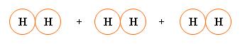 Observe como é representada graficamente três moléculas de hidrogênio.