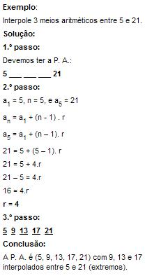 Interpolar ou inserir k meios aritméticos entre dois termos extremos a e b de uma progressão aritmética significa obter uma P. A. com (k + 2) termos.