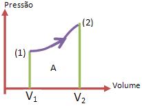 Vejamos agora um diagrama, onde um sistema de gás perfeito, passa do estado (1) para o (2):