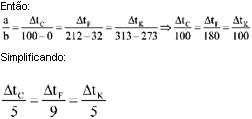Vamos correlacionar as variações de temperatura expressas na escala Celsius (
