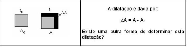 Quando estamos estudando a dilatação de uma placa de concreto, teremos a ocorrência predominante de um aumento na área dessa placa. Essa é a característica da dilatação superficial. Imaginemos uma placa de área inicial Ao e temperatura inicial to. Ao aquecermos esta placa para uma temperatura t ela passará a ter uma nova área A. Vejamos o esquema: