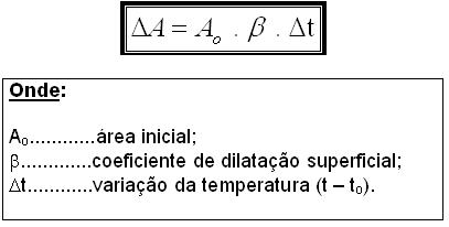 O coeficiente de dilatação superficial é a grandeza que indica o material utilizado. A relação do coeficiente de dilatação superficial com o linear é dada por: