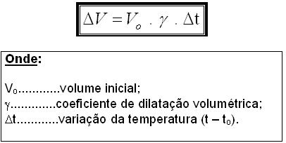 O coeficiente de dilatação volumétrica é a grandeza que indica o material utilizado. A relação do coeficiente de dilatação volumétrica com o linear é dada por: