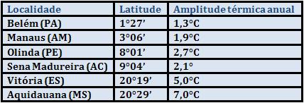 Uma região, quando encaixada mais para o interior do continente, apresenta oscilação térmica mais pronunciada, comparada à variação do litoral, em função da perda maior de temperatura entre o verão e o inverno.