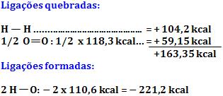 ∆H = + 163,35 kcal – 221,2 kcal = – 57,85 kcal