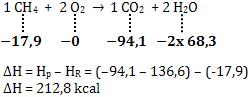 Tendo conhecimento das entalpias de cada substância através de uma tabela, podemos calcular o ∆H da reação: