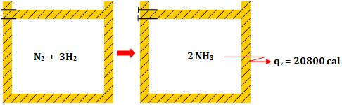 Toda energia sob volume constante, originada da reação, é liberada na forma de calor (qv).
