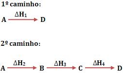 Seja um sistema no qual o estado inicial será representado por A, e o estado final por D. Considere que existam dois caminhos, pelos quais podemos obter o estado final a partir do estado inicial.