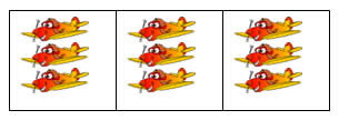 | d) 3 vezes 3 aviões, são aviões [R] 3 x 3 = [R] |