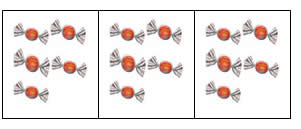 | f) 3 vezes 5 bombons são bombons [R] 3 x 5 = [R] |
