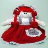 The doll is red. |