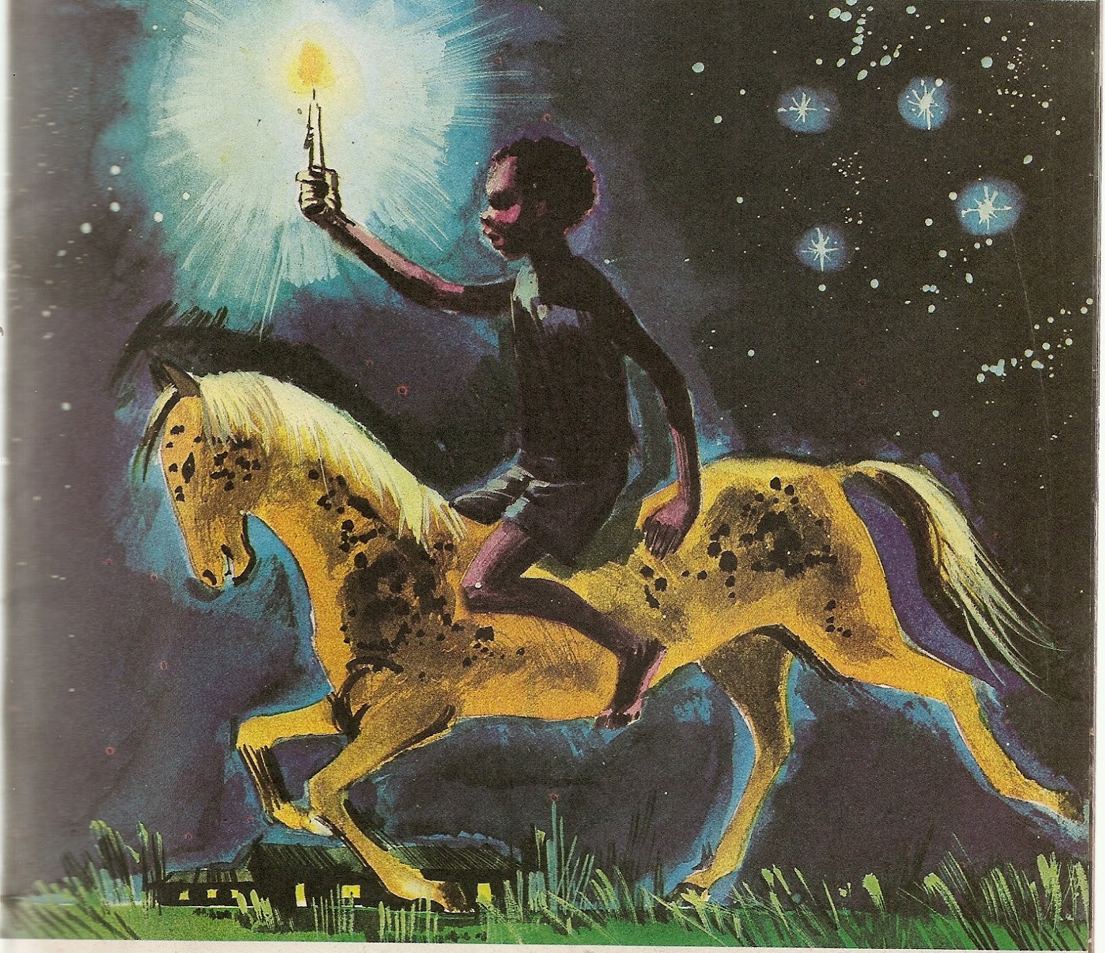 O pequeno menino cansado de tanto apanhar e com fome adormeceu e quando acordou percebeu que todos os cavalos haviam fugido. Ficou desesperado e como tinha uma crença em Nossa Senhora, pediu proteção para que encontrasse os cavalos. Ascendeu uma vela e saiu à procura. Como por encanto, a cada pingo da vela, uma luz se acendia e tão logo encontrou os animais perdidos. A lenda conta que se alguém perder qualquer coisa e precisar de ajuda, pode pedir ao Negrinho do Pastoreio que ele logo socorre.