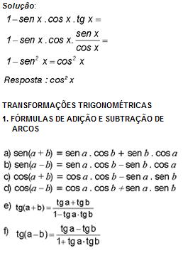 1 – sen x . cos x . tg