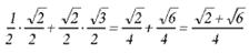 sen (30º + 45º) = sen 30º. cos 45º + sen 45º . cos 30º =