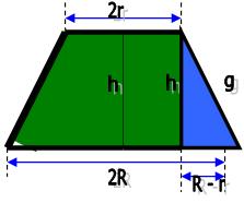 5-) A secção meridiana do tronco de um cone é o trapézio (que tem dois lados iguais) de bases 2r e 2R e altura h.