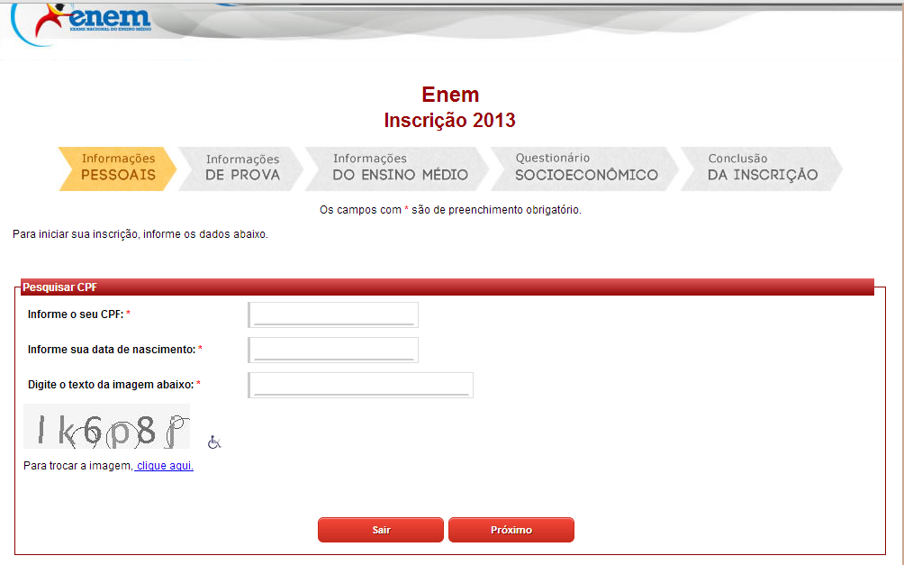 Veja abaixo o que deve ser preenchido no ato da inscrição:
